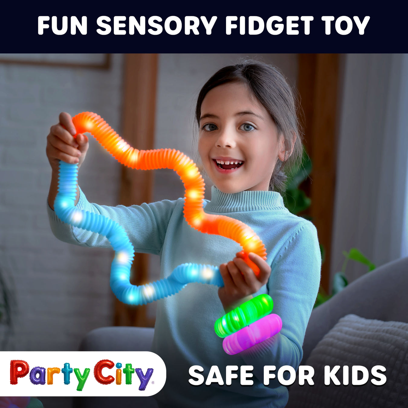 UPC: 809801999403 Authentic Party City LED Glow Pop Tubes: Light up the night with 12 vibrant sensory pop tubes that expand to 25”, glow in the d...