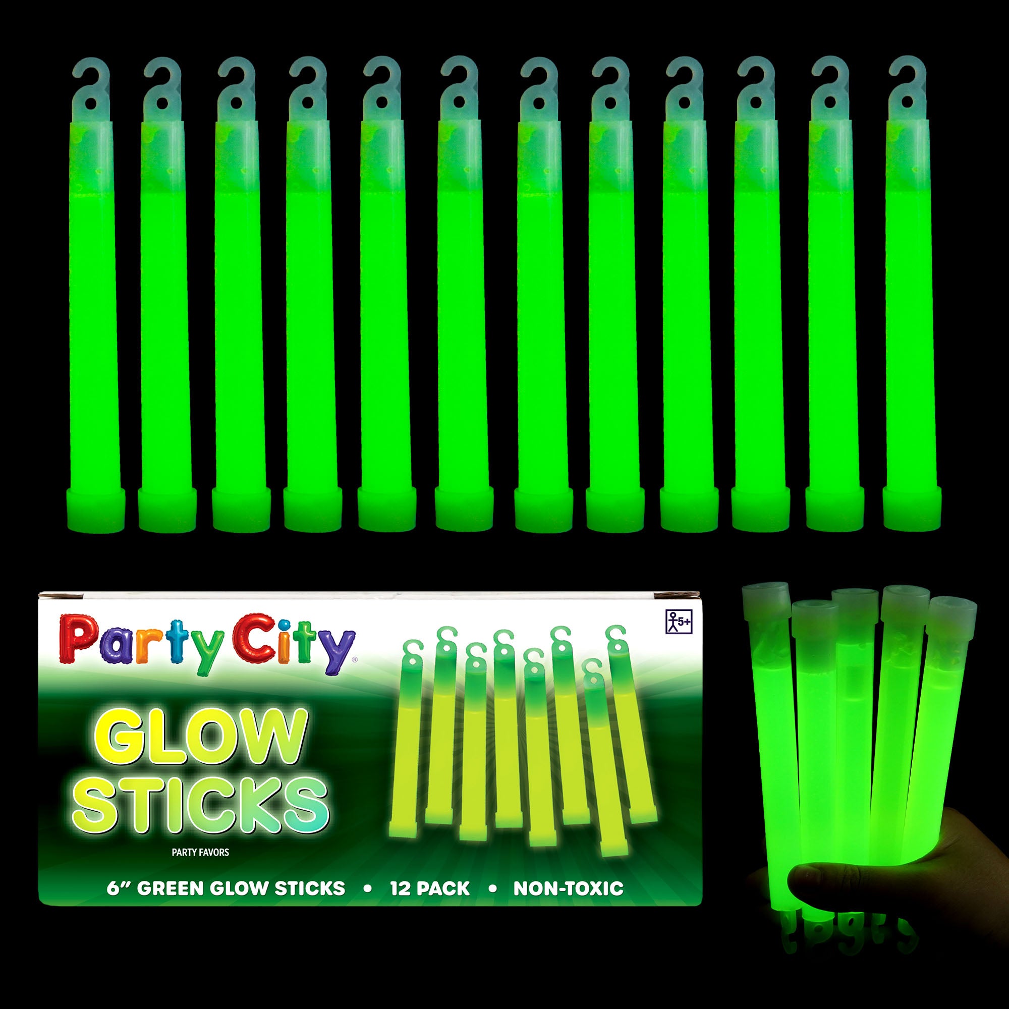 Authentic Party City Glow Sticks: From the trusted name in celebration, these 12 pack 6” glow sticks in bright green color & 12 necklace strings deliver vibrant neon light. Party City is your go-to for quality glow in the dark party supplies.