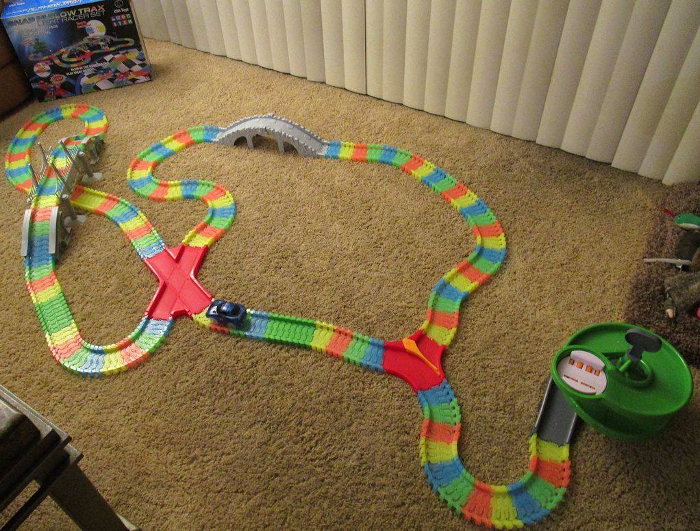 - Custom-Build Your Race Track: Build unique lighted glow track routes and test to see which slot car toys go the fastest. Turn off the lights to see your glow in the dark toys zoom on this fun, light up race track.